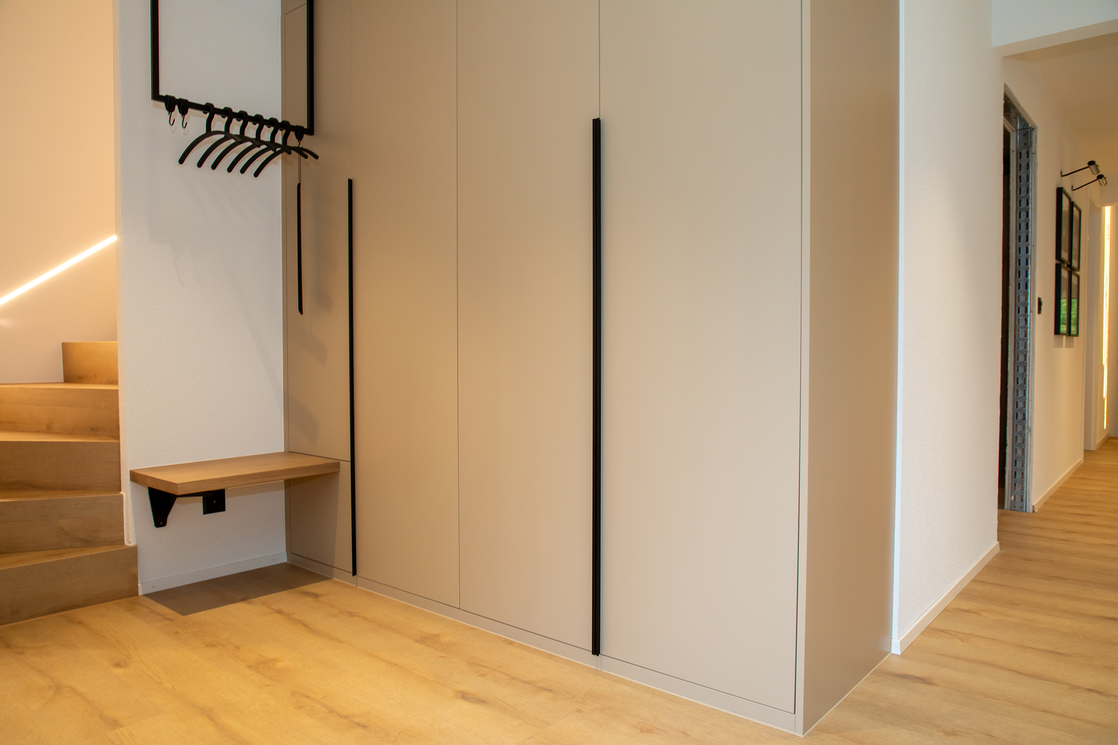 Hochwertige Einbauschränke, welche den vorhandenen Platz optimal nutzen, Garderoben, Regale, dekorative und praktische Möbelstücke aller Art und Massivholztische sind genauso unsere Spezialität wie Täferdecken, Wandverkleidungen, Raumteiler und Parkettböden.